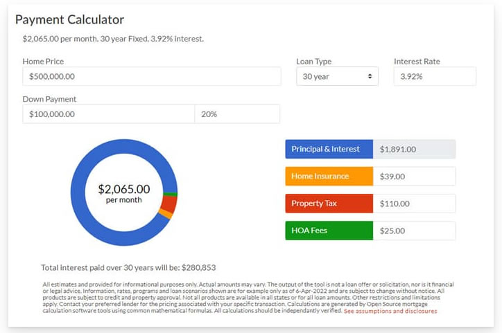 Allows adjustments for interest rate, down payment, taxes, and insurance
